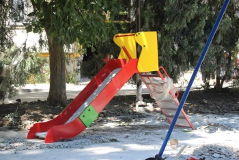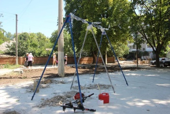 По информации главы администрации, сегодня рабочие производят во дворе монтаж детской площадки, устанавливают горку, качели. Также игровую зону дополнят карусель и песочница.