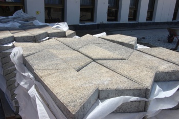 Также строители готовят основание для укладки плитки. По проекту предусмотрена изоляция геотекстилем. Это увеличит период эксплуатации материалов и устойчивость к негативному влиянию окружающей среды.