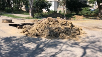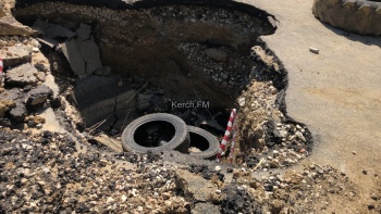 В Керчи на ул. Черноморской появилась огромная дыра в асфальте. О причинах появления догадаться не сложно - порыв водовода, - передает Керчь.ФМ.