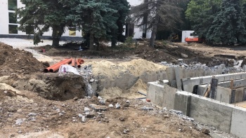 В Керчи у Дворца культуры «Корабел» продолжается благоустройство, которое уже должно было завершится, но затянулось из-за работ по замене коммуникаций. Так, рабочие продолжают укладывать плитку, заливать сухой фонтан. Появились новые траншеи для укладки кабелей, - передает Керчь.ФМ.