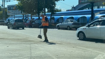В Керчи 4 августа с утра осужденные чистят проезжую часть около автовокзала,  - передает Керчь.ФМ.