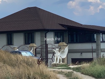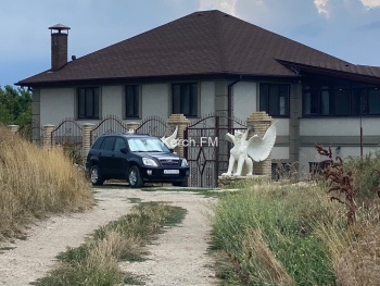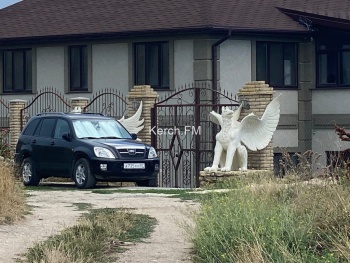 В Керчи на горе Митридат въезд в один из частных домов украсили двумя грифонами. Об этом в редакцию Керчь.ФМ сообщили очевидцы.
