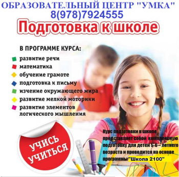 Лето - чудесная пора отдыха и беззаботного времяпрепровождения. Но заботливые родители не перестают думать о развитии своего ребенка даже во время отдыха. Образовательный центр «Умка» открывает набор на новый учебный год. От сентября нас отделяют несколько недель жаркого лета, но запланировать образовательную программу для своего ребенка можно уже сейчас!