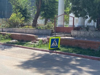 В Керчи упал знак пешеходного перехода на улице Театральной. Об этом Керчь.ФМ сообщили постоянные читатели.