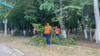 В Керчи 15 августа в Комсомольском парке и на улице Кирова вдоль дороги производят обрезку деревьев. Спиленные ветки складывают на газон, для дальнейшей погрузки в «лодочки», - передает Керчь.ФМ.