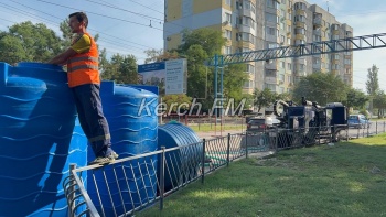 В Керчи на ул. Свердлова идет замена магистрального водовода. Из-за этого на проезжей части ранее установили бетонные блоки на проезжей части, - передает Керчь.ФМ.