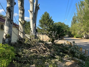 Сейчас в школе продолжаются активные работы даже в выходные. Ветки деревьев, которые помог спилить Крымэнерго, с территории перед школой пока никто не вывез.