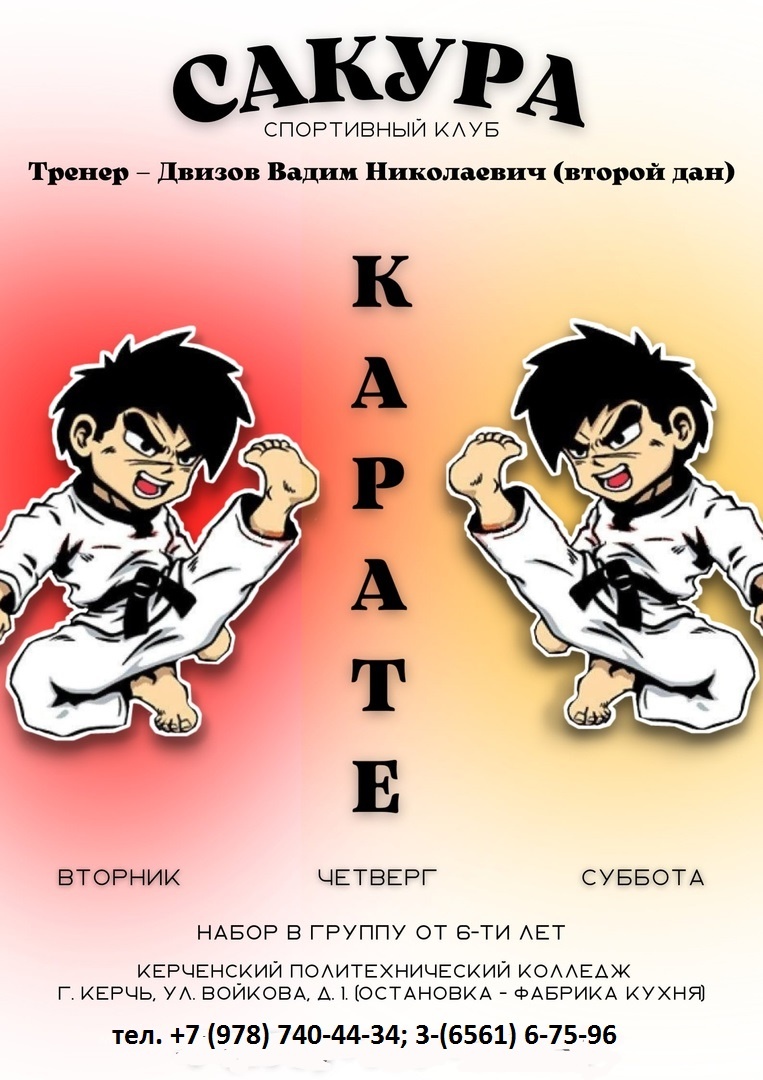 Спортивный клуб «Сакура» объявляет набор в группу от 6 лет