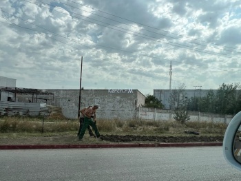 В Керчи 26 августа на Куль-Обинском шоссе рабочие перекапывают газон. Работы проводят пара специалистов, - передает  Керчь.ФМ.