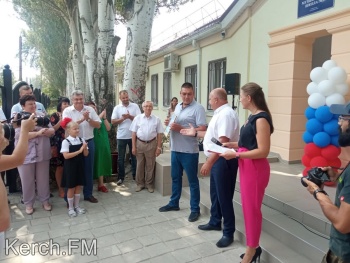 Красную ленточку разрезали руководители Керчи вместе с ученицей. Перед присутствующими выступили дети вместе с преподавателями.
