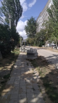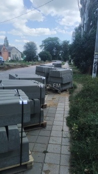 В Керчи в переулке Корабельном пешеходы не могут нормально пройти по тротуару: рабочие выгрузили бордюры прямо посреди пешеходной дорожки. Об этом Керчь.ФМ сообщили постоянные читатели