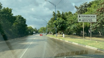 Здесь еще на выходных появился провал, после рабочие перекрыли полосу для движения, чтобы восстановить беспрепятственный проезд в этом месте. Но, движение по полосе в сторону горпляжа у перекрестка с улицей Тенистой все еще затруднено. На дороге находится пластиковый блок.