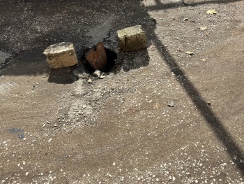 В Керчи второй раз в этом году проваливается асфальт на дороге за магазином «Ольга» по ул. Орджоникидзе, - передает Керчь.ФМ. Провал керчане обозначили камнями и деревяхой.
