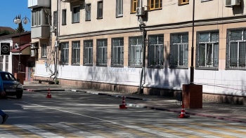 В Керчи 21 сентября часть дороги по улице Советской, около библиотеки, оградили. Это связно с работами на крыше дома, - передает  Керчь.ФМ.