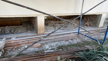 Данные дома попали в список капитального ремонта. И вот вроде красота снаружи, а подвалы остались мокрыми и грязными. Чтобы эту грязь было не видно, рабочие с улицы закрыли окна в подвал досками и сетками. Однако жители дома до сих пор мучаются от сырости и вони.