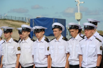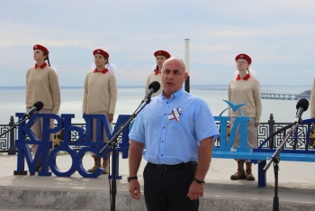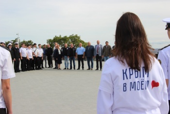В рамках акции члены молодёжной организации из крымской столицы передали элемент Государственного флага Республики Крым синего цвета и книгу «Я люблю тебя, Крым» нашему городу.
