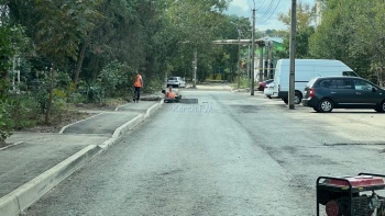 В Керчи продолжается реконструкция дворов на Вокзальном шоссе, 43, 45, 47 и 49. С помощью спецтехники рабочие уже уложили асфальт.