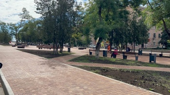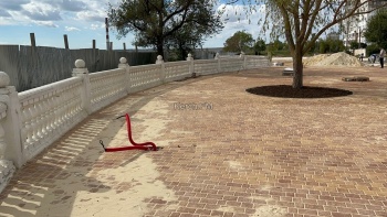 Так, рабочие уложили плитку на дорожках, которые ранее не доделали, а также на площадке у балюстрады. На этой площадке оставили место для двух клумб, а также не тронули дерево, растущее над памятником. Место для памятника также оставили свободным. Саму балюстраду не тронули, видимо, хотят реставрировать, чему рады местные жители.