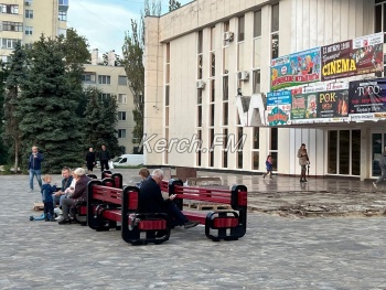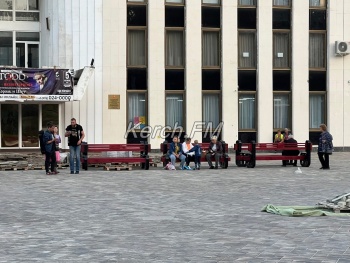 Но, уже на площадь перед дворцом культуры привезли старые отреставрированные лавочки, покрашенные в красный. Их пока просто поставили перед центральным входом, но керчане сразу решили отдыхать на них.