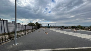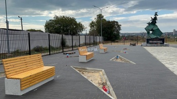 В Керчи продолжается благоустройство площади у мемориала погибшим в политехническом колледже на городском кладбище. Рабочие уже уложили плитку, установили скамейки и сделали освещение. С одной стороны территорию оградили забором.