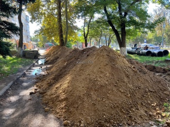 В Керчи продолжается, уже кажущаяся бесконечной, замена магистрального водовода. Из-за работ за остановкой «Институт» оказался перерыт тротуар и подход к остановке. Рядом насыпана большая куча земли, - передает Керчь.ФМ.