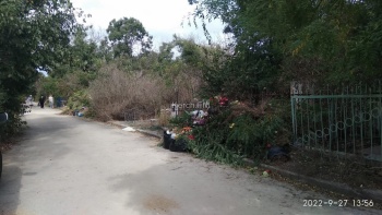 «Очередной плевок в сторону горожан. Вот и прошли поминальные дни и большой православный праздник Воздвиженье. Прейдя на кладбище помянуть близких, люди столкнулись с горами мусора, который так тщательно вычищали накануне, наводя чистоту и порядок на могилах перед праздником. Мусор люди сносили на обочины дорожек, чтобы коммунальным службам было удобно его собрать, но эти горы мусора в человеческий рост, а то и в полтора, торжественно встречали горожан на ВСЕХ кладбюищенских дорожках центрального городского кладбища! Даже на большой дороге, где проезжает автобус № 8 (вокруг кладбища), огромные контейнеры стояли переполнены мусором, а ветре разносил из них целлофановые пакеты и легкий мусор.