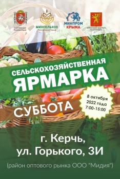Также, 8 октября пройдёт специализированная сельскохозяйственная ярмарка по реализации продовольственной группы товаров и сельскохозяйственной продукции. Торговля развернётся по адресу: г. Керчь, в районе ул. Горького, 3И (район оптово-розничного рынка "Мидия").