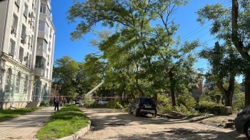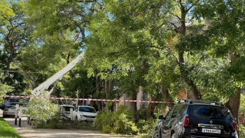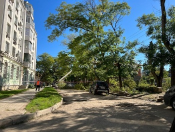 В Керчи днем 7 октября у жилых домов в переулке Сенной пилили высокие деревья, - передает Керчь.ФМ. Работы вели с помощью автовышки, из-за этого была перекрыта часть дороги.