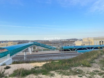 В сторону моста приехал поезд с подъемником, арматурой и кабелями. Собираются проводить восстановительные работы. На 16:50 часов он стоял на станции.