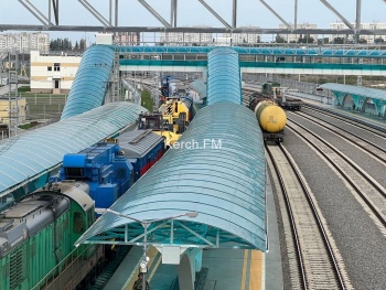 На станции «Керчь-Южная» стоит поезд с цистернами. Рядом дежурят военные с автоматами. Об этом сообщает журналист Керчь.ФМ с места событий.