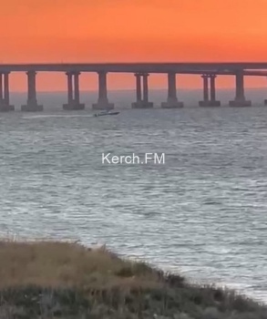 На 06:43 Крымскому мосту с моря подходит катер. Наш корреспондент сообщает новости с места событий. Тушение возгорания до сих пор не началось. Также не видно спасателей.