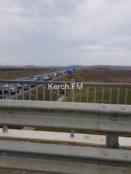 Это произошло из-за того, что на автоподходах образовалась многокилометровая пробка из желающих покинуть Крым. Автобус по данной дороге не может проехать.