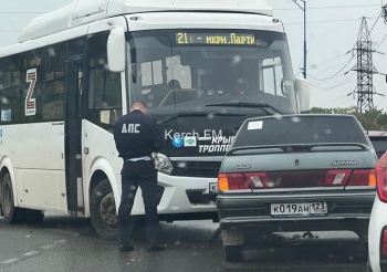 В Керчи произошло лобовое столкновение автобуса и легковушки