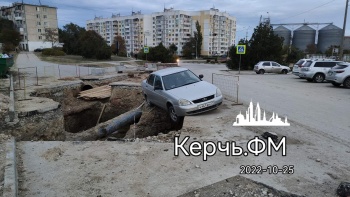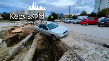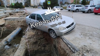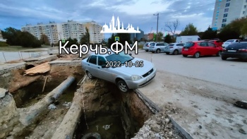 Легковой автомобиль регистрации 31 региона подвис над водоканальной ямой на Марате. Чудом не случилось трагедии, - передает Керчь.ФМ.
