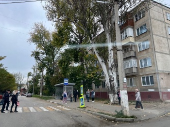 На Ульяновых в Керчи упал знак пешеходного перехода