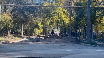 На участке от улицы Суворова до Розы Люксембург укладывают трубы. Движение здесь для транспорта перекрыто. Предупреждающие дорожные знаки объезда, так и не установили.