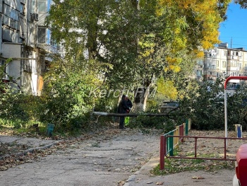 В Керчи во дворе дома по Орджоникидзе, 112 с утра 1 ноября работает бригада рабочих, которые пилят деревья. Так, рабочие уже спилили молодое дерево, которое росло в палисаднике и не мешало ни жителям, ни проезду. А рядом находятся старые деревья, у которых убрали лишь некоторые ветки и то не все.
