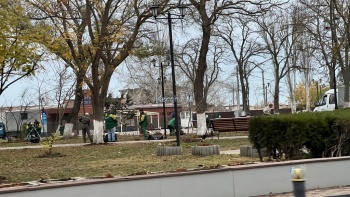 В Керчи на морвокзале территорию сквера приводили в порядок. Сотрудники зеленхоза собирали опавшие листья, - передает Керчь.ФМ.