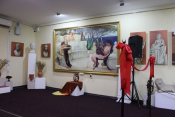 В Картинной галерее Восточно-Крымского историко-культурного музея-заповедника состоялось торжественное открытие выставки трёх картин «Под крышей синей ионийской погоды», которые дополнили постоянную экспозицию «Мельпомена в Пантикапее», - передает Керчь.ФМ.
