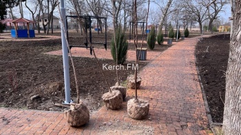 В Керчи в парковой зоне им. Ю. Гагарина 11 декабря продолжаются работы по благоустройству территории. Сегодня рабочие заняты озеленением территории, они высаживают различные деревья. Кроме этого убирают опавшую листву с газонов. Стоит отметить, что вся плитка в парке в грязи.