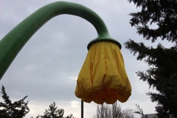 Подрядная организация «СТРОЙГАРАНТ» завершила монтаж световых фигур «Подсолнух», бутоны которых будут открываться и закрываться через определенное время. Высота стебля 5, 5 м, диаметр бутона до 3 м, общий вес цветков 250 кг.