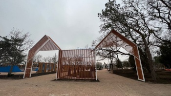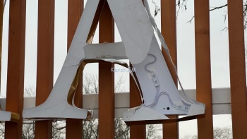 В Керчи в парковой зоне им. Ю. Гагарина 16 декабря продолжаются работы по благоустройству территории. Работы не успели завершить, а вандалы уже начали портить декорации. Так, на входной группе неизвестные сломали на светящейся табличке буку «А».