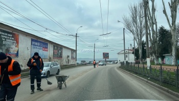 В Керчи осужденные убирали дорогу на Адмиралтейском проезде