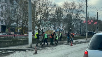 Но, керчане говорят, что работа сложная и немного бесполезная - на обочинах стоят глубокие лужи и в этом месте постоянно собираются кучи грязи
