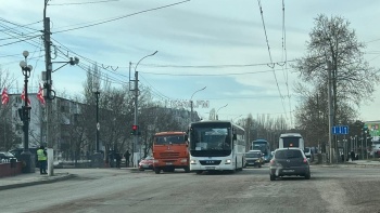 В Керчи днем 12 января, на перекрестке Еременко-Мирошника произошла авария.  Здесь не поделили дорогу КАМАЗ и «Хонда», - передает Керчь.ФМ.
