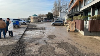 В Керчи 19 января на набережной, около Генмола, засыпали ямы на дороге. Они были большие и глубокие. Из-за праздника коммунальщики решили подсыпать отработанным асфальтом дорогу, чтобы керчане более-менее комфортно дошли до места купания.