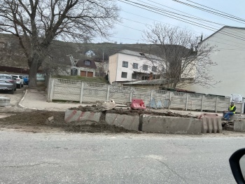 В Керчи на улице Свердлова продолжаются активные работы по замене магистрального водовода. В последние дни работы здесь идут боле активно, постоянно работает тяжёлая техника, появились новые места проколов, - передает Керчь.ФМ. Из-за техники в некоторых местах перекрывают одну полосу для движения.