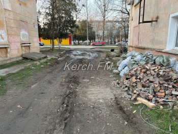 В Керчи внутридворовая дорога, которая приходит вдоль домов Победы, 9, 9а, Орджоникидзе 36/11, практически не проходима большую часть года. Она состоит только из грунта, где собираются глубокие лужи и не сохнут месяцами. Усугубляет положение и мусоровоз, который приезжает сюда к контейнерам и разбивает дорогу людям еще больше. Чтобы хоть как-то решить проблему, жители самостоятельно перекрыли проезде здесь ветками, - передает Керчь.ФМ.