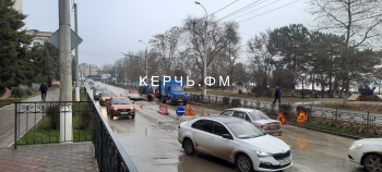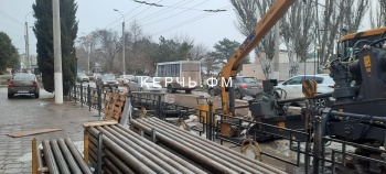 В Керчи с утра 30 января сильно затруднено движение по улице Свердлова. Здесь посреди проезжей части вырыли котлован для работ на трубопроводе, также работает техника.