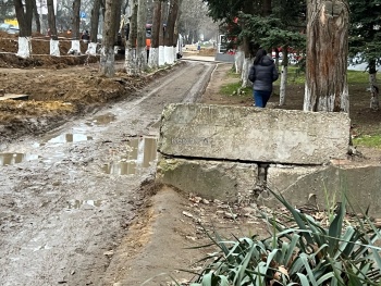 В Керчи замена водовода лишила жителей района «Института» нормального прохода к остановке и магазинам. Люди прыгают через бетонные блоки либо топчут клумбы, потому что пешеходная дорожку полностью перерыта, а дорога рядом превратилась в грязевое не просыхающее месиво, - передает Керчь.ФМ.